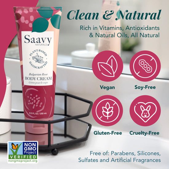 Our Bulgarian Rose Body Cream provides deep, lasting moisture anytime you wish to feel pampered. The amazingly delicate and soft scent of rare Bulgarian Rose takes you away to a picnic under a rose arbor. Never heavy or greasy. Made with 100% pure ingredients, including Chamomile, Argan Oil, Rosa Damascena Bud Extract, and Bergamot Oil.