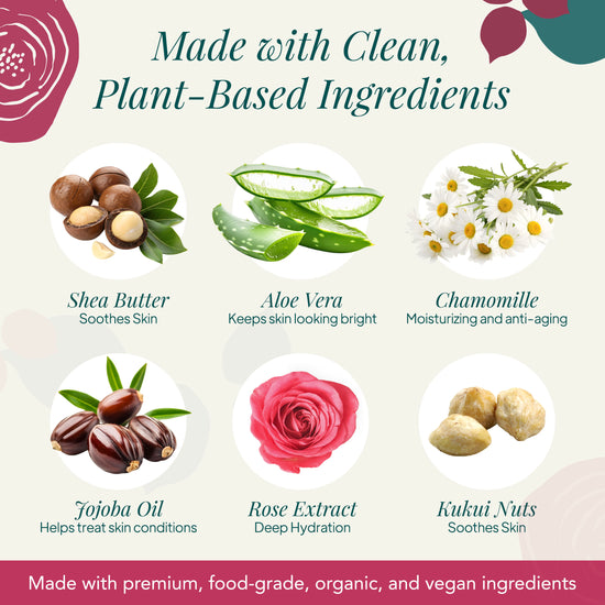 All-natural, minimally-processed plant-based ingredients. We never use parabens or chemicals of any kind.